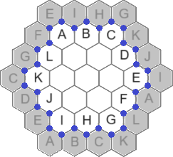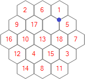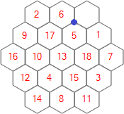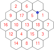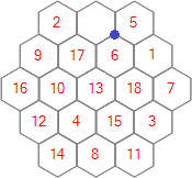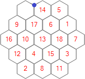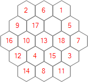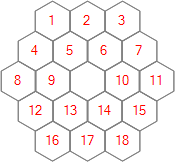 Each of the 25 puzzles is played on a regular hexagonal grid. The puzzles differ from each other only in the sizes of their grids, which vary from order 3 to order 27. For this contest we'll generally refer to a grid of order n as being of size n.