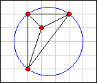 We give a raw score to each solution you submit. The raw score is the area of the smallest enclosing circle divided by pi. For example, examples A and B above would receive raw scores of 6.25 and 5, respectively.