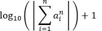 Each entry submitted to the contest receives a raw score equal to the base-10 logarithm of the absolute value of the sum of its n nth powers, plus 1. Formally, its raw score equals: